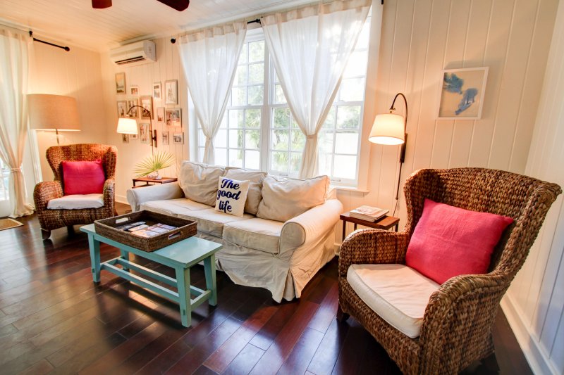 Swept Away is an elegant house centrally located on Alice Street. Lovely gardens in the front of the house and brand new pool, lead to a gracious interior which has been professionally decorated with hardwood flooring, dark wood furniture and off-white fabrics.