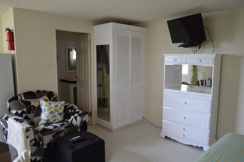Cozy fully furnished and well laid out studio apartment situated in the quiet neighbourhood of Briar Hall Gardens, Christ Church. It is close to the well-known fishing two of Oistins which is famous for its Friday night fish fry: St. Lawrence Gap, the hottest entertainment spot on island and the largest mall in Barbados, Sheraton Centre. The apartment is owned and managed by the couple Kent and Diana Jerson who live upstairs with their two teenage daughters.