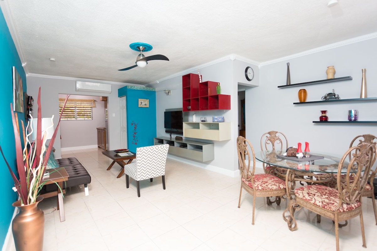 Ten minutes away from Kingston (no issues with traffic). This luxury apartment is located 300 Meters in the hill above Havendale, the neighbourhood is very quiet and secure.