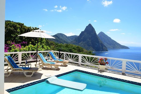 * Floating in a sparkling swimming pool surrounded by brilliant bougainvillea, amazed by the panoramic view of the Pitons and the deep blue Caribbean
