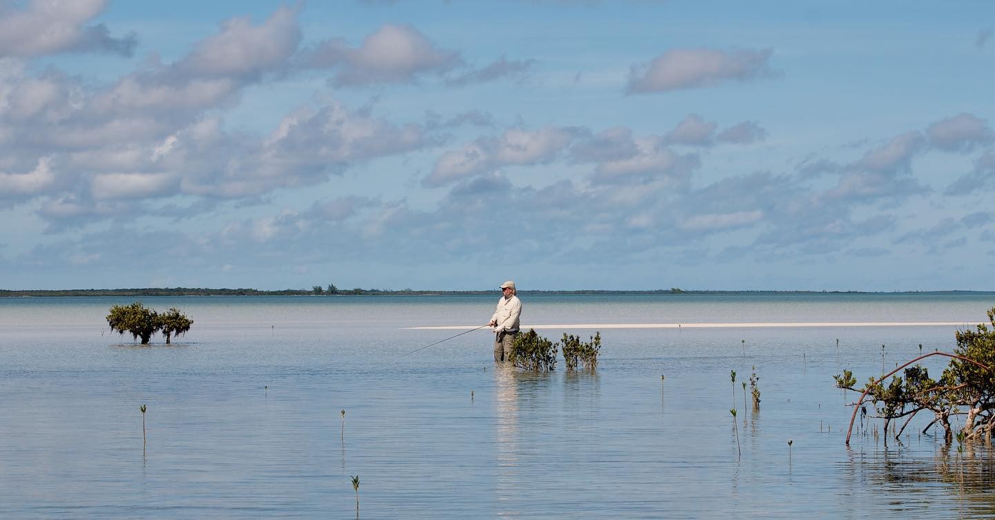 Six miles of uninhabited coastline accessible from the lodge offer walks on secluded beaches. A short walk from the lodge leads way to the blue holes. These blue holes are small pond like water openings in the forest that open way to extensive underwater caves systems that attract divers and researchers from around the world. The property also offers miles upon miles of hard bottom wadable flats.